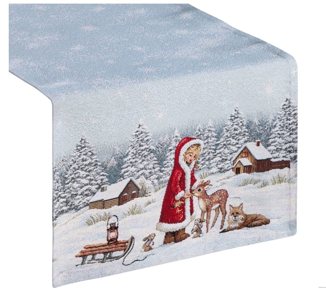 Bieżnik gobelin wzór zimowy Domek 43x140