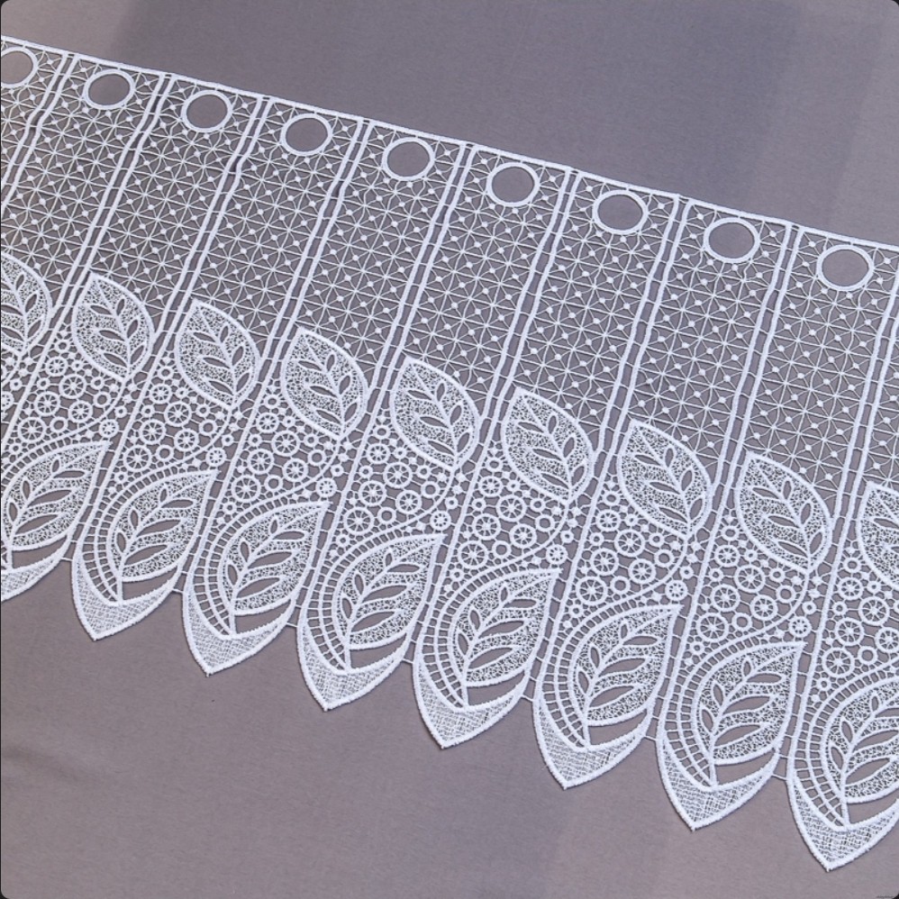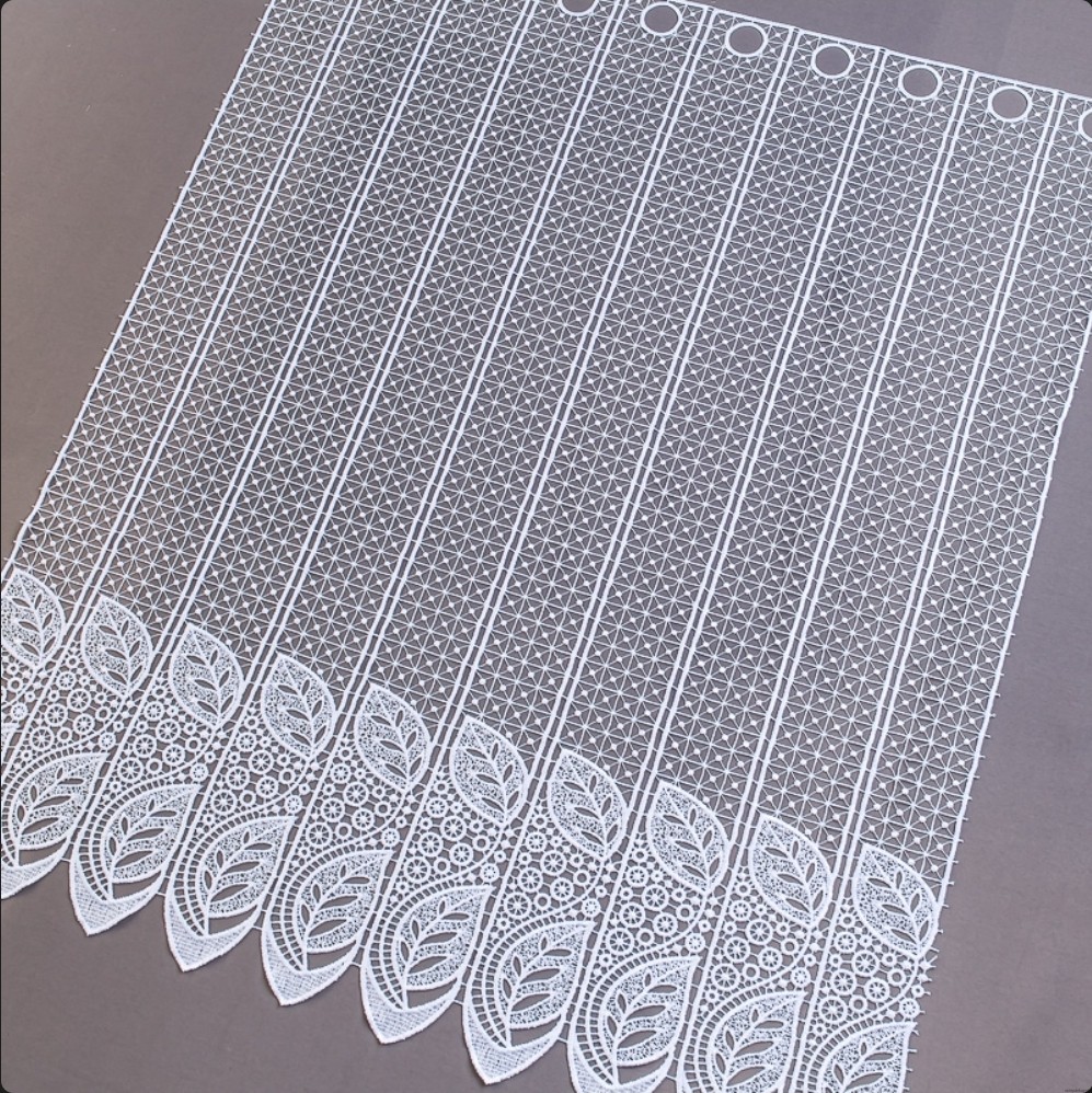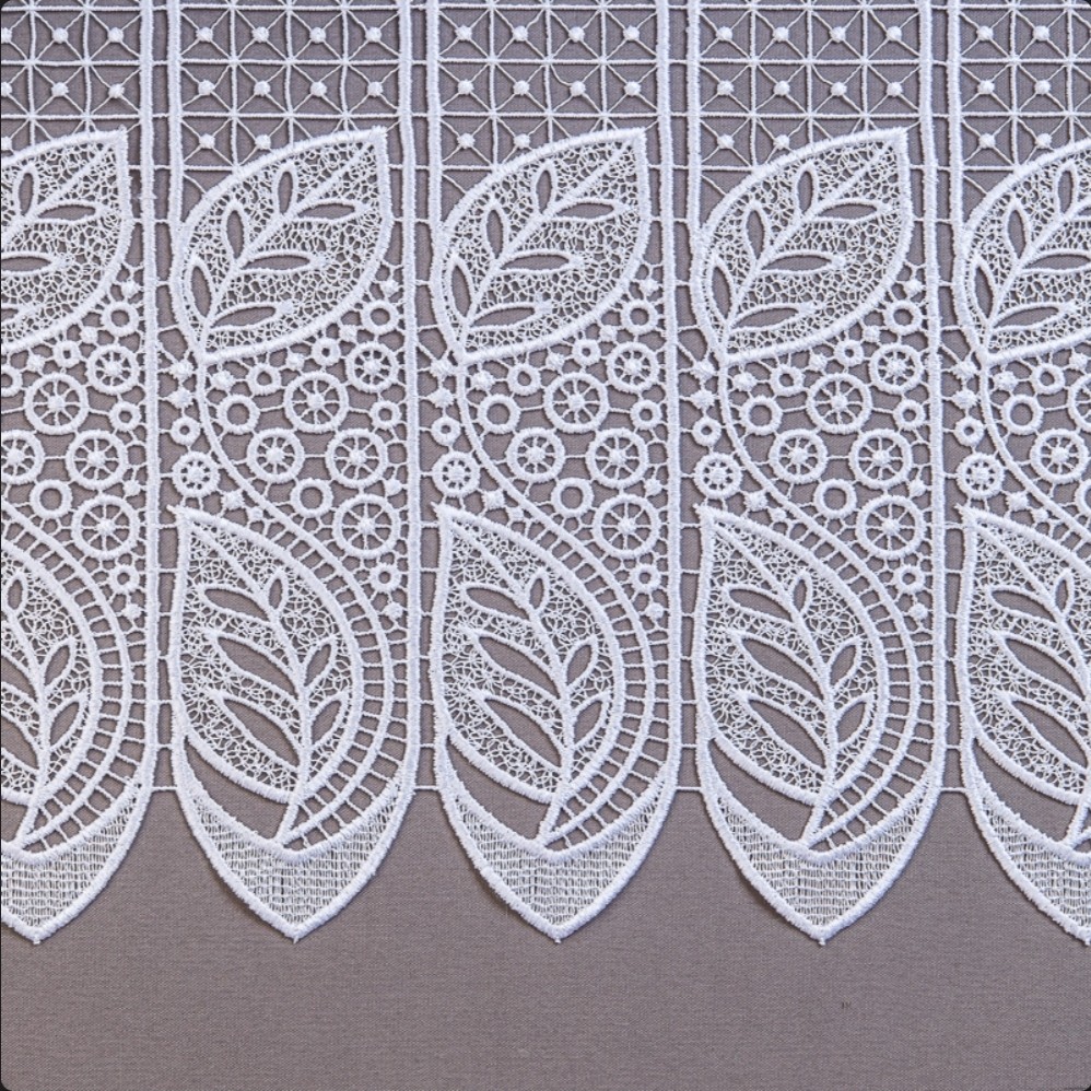 Tkanina firanowa o ażurowej strukturze to dodatek, który sprawdza się zarówno w klasycznych, jak i nowoczesnych wnętrzach. Niezwykle elegancka gipiura o grubym wzorze doskonale prezentuje się jako samodzielna dekoracja okienna.