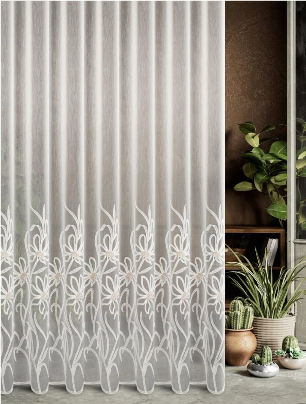 Firanka haftowana z motywem kwiatowym – elegancja i lekkość w Twoim wnętrzu