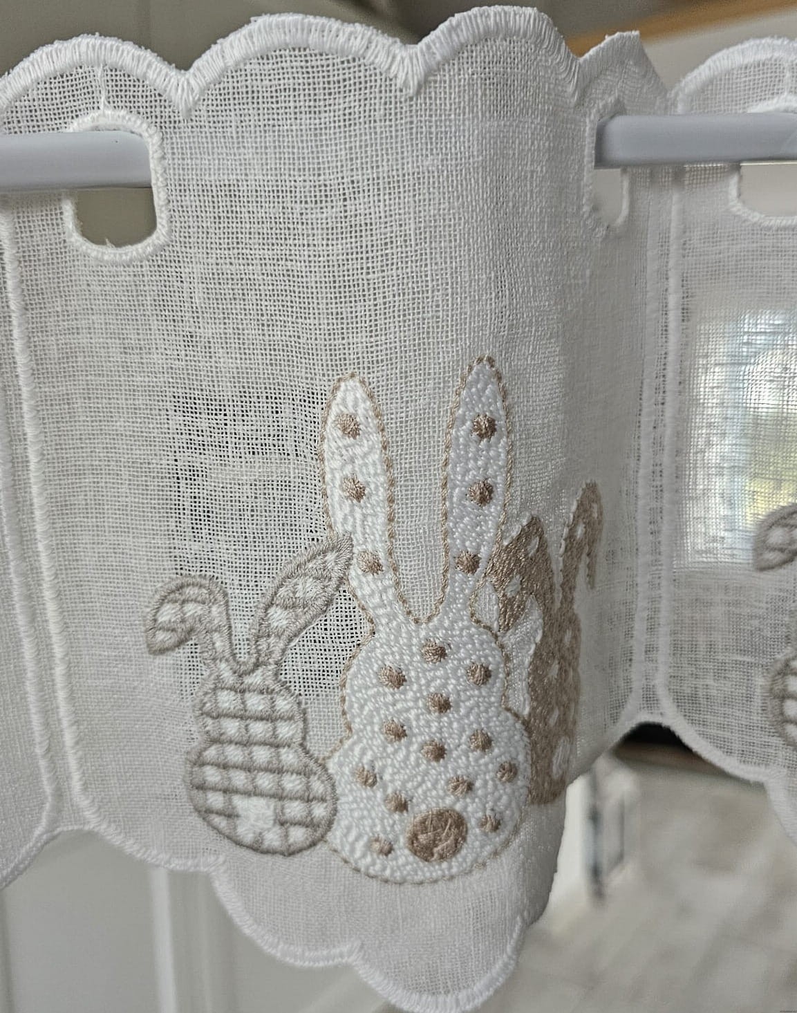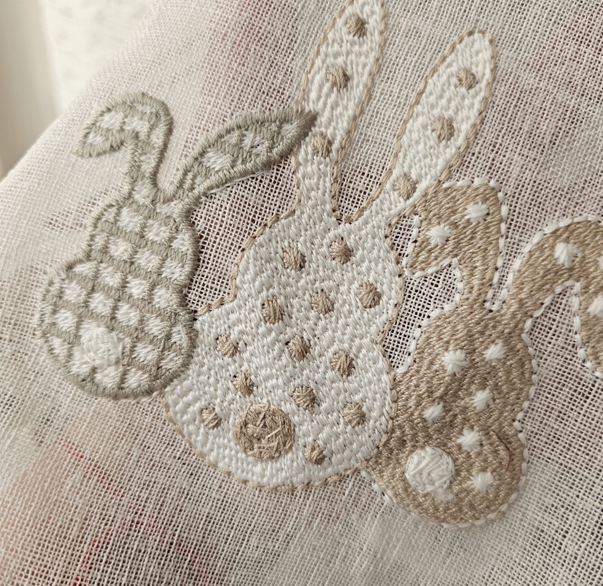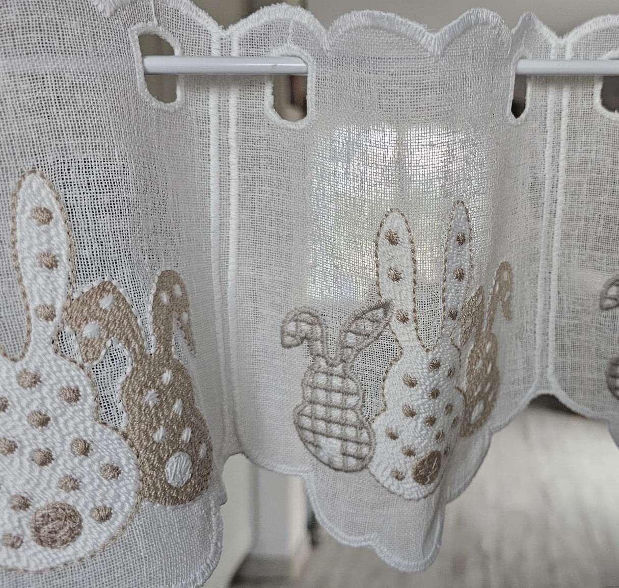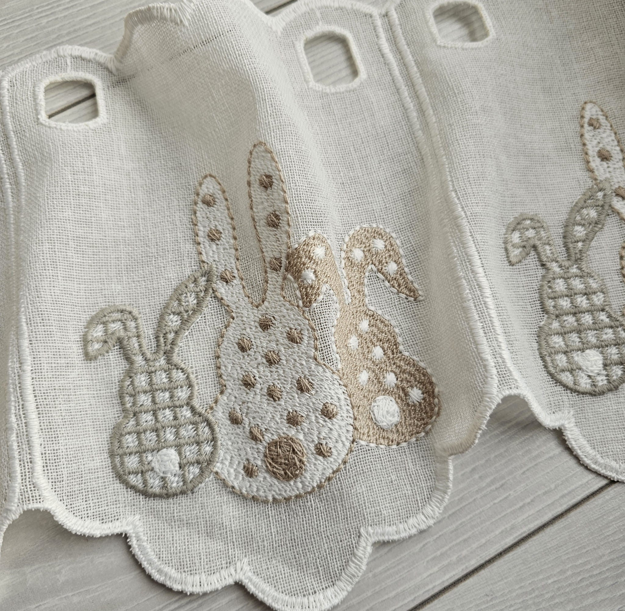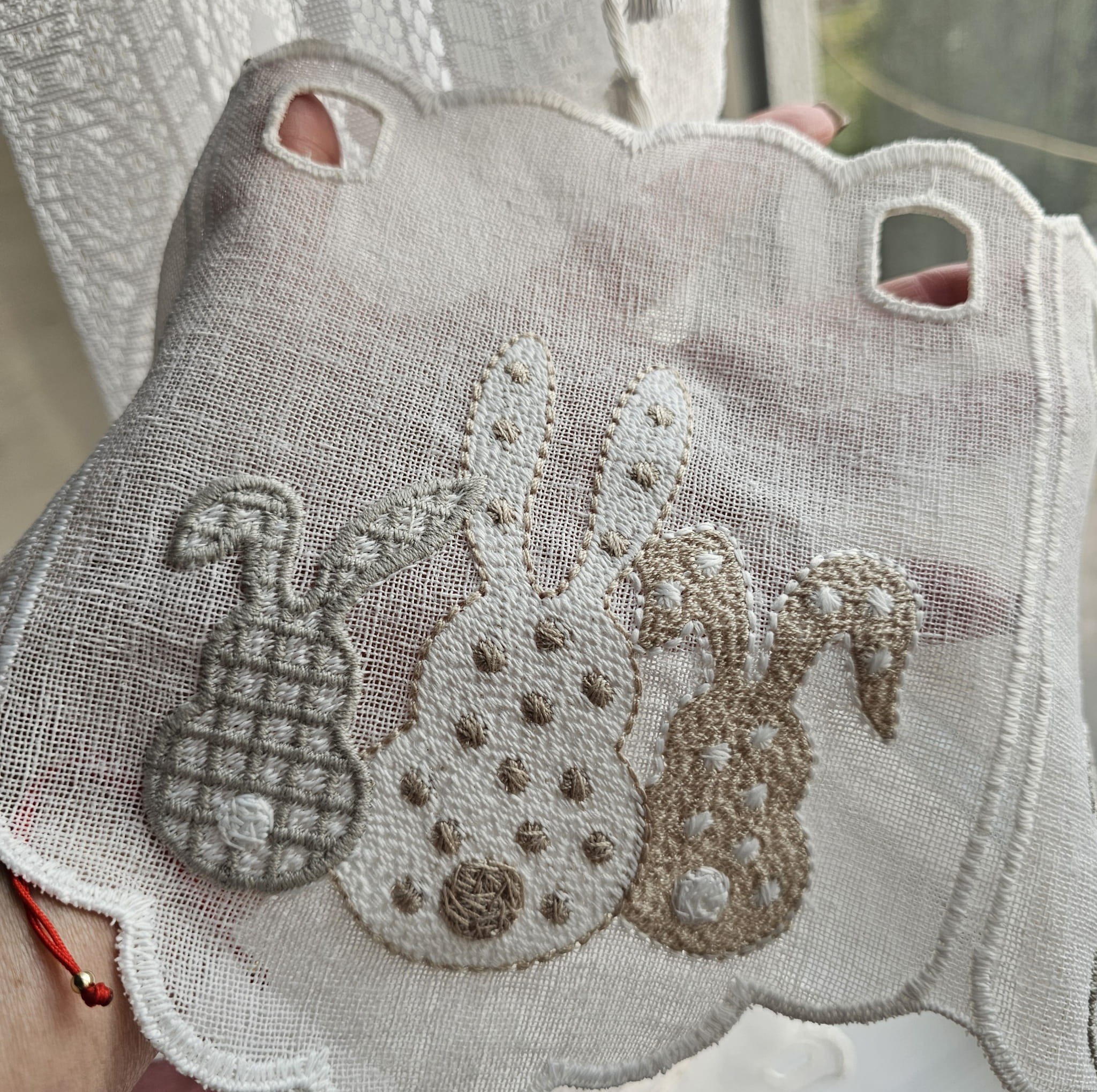 Urocza zazdrostka z motywem BEŻOWYCH ZAJĄCZKÓW. Pięknie będzie się prezentować jako WIOSENNO świąteczny wystrój. Pięknie wyhaftowana z niezwykłą starannością.