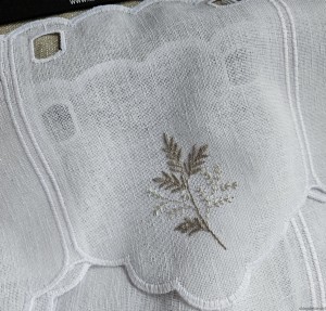 Urocza zazdrostka z motywem pięknej, delikatnej gałązki beż+złoto. Pięknie będzie się prezentować jakp świąteczny wystrój. Pięknie wyhaftowana z niezwykłą starannością.