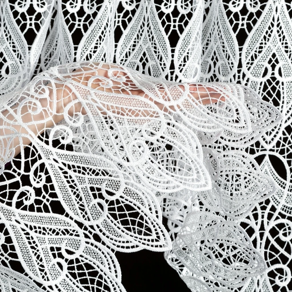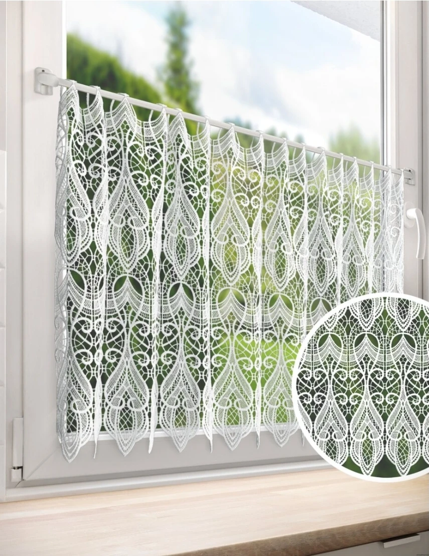 Tkanina firanowa o ażurowej strukturze to dodatek, który sprawdza się zarówno w klasycznych, jak i nowoczesnych wnętrzach. Niezwykle elegancka gipiura o grubym wzorze doskonale prezentuje się jako samodzielna dekoracja okienna.