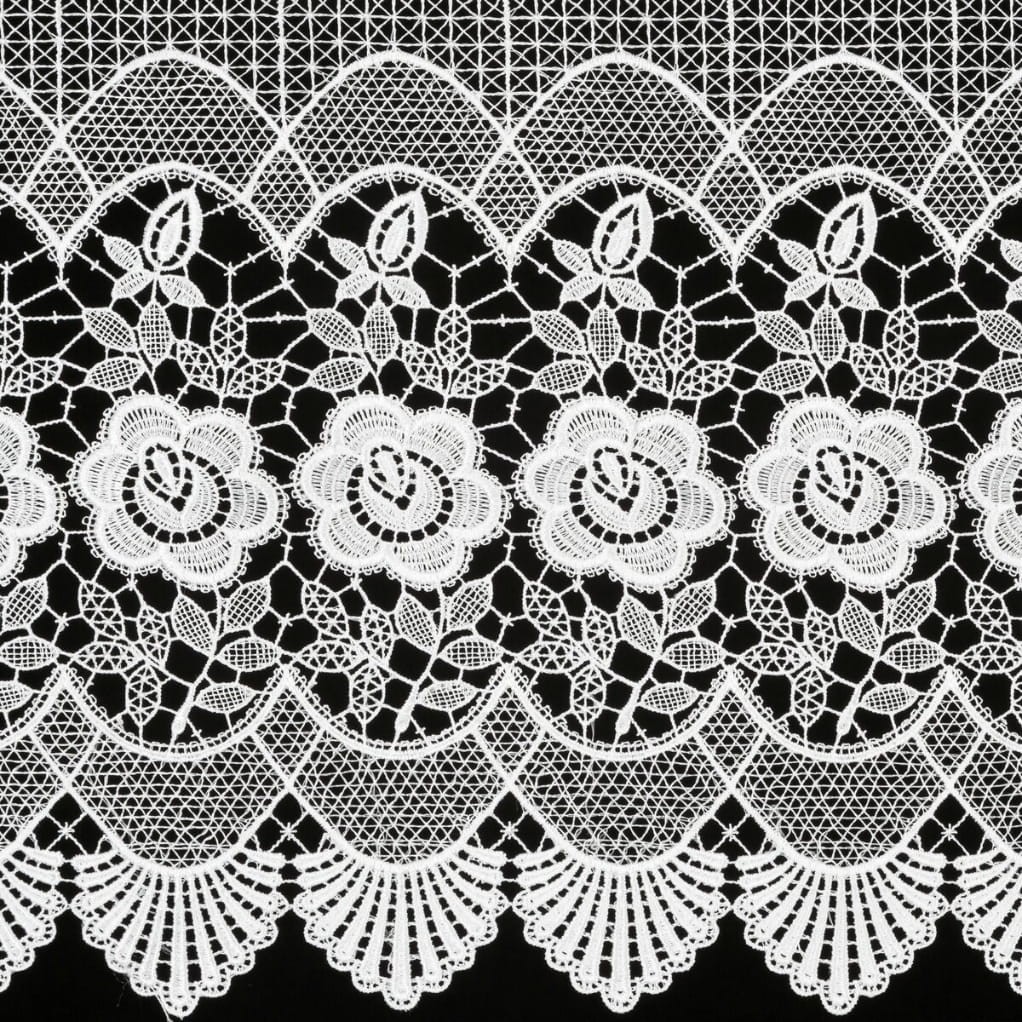 Tkanina firanowa o ażurowej strukturze to dodatek, który sprawdza się zarówno w klasycznych, jak i nowoczesnych wnętrzach. Niezwykle elegancka gipiura o grubym wzorze doskonale prezentuje się jako samodzielna dekoracja okienna.